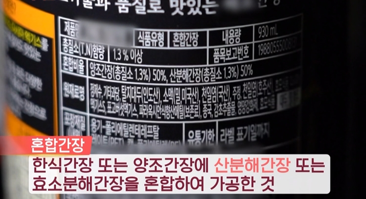 이 산분해간장은 시중에는 주로 혼합간장으로 판매됩니다. 양조 또는 한식 간장과 산분해간장을 배합해서 만든 것이 혼합간장인데요.