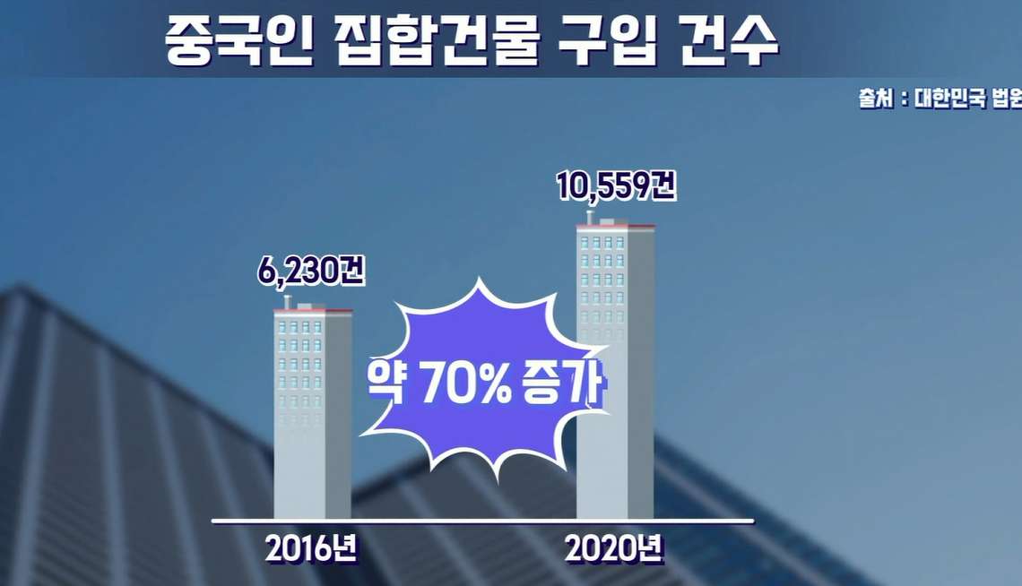 실제로 최근 5년간 국내 아파트나 빌라 등의 집합건물을 매수한 중국인은 전체 매수 건 중 0.4%에서 0.7%밖에 되지 않습니다. 매수세가 증가하고 있긴 하지만 사람들이 걱정하는 것처럼 중국인들이 국내 부동산을 싹쓸이할 정도의 큰손이라고 보기는 어렵다는 겁니다. 하지만 외국인의 거래량이 많지 않다고 하더라도 안심할 수만은 없다고 합니다.