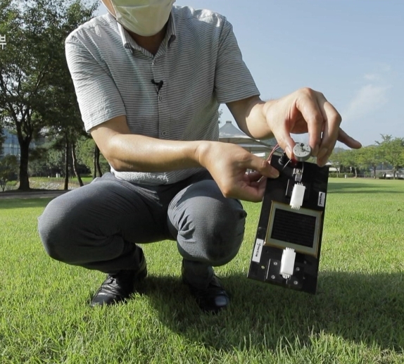 연구 중인 페로브스카이트 태양광 모듈을 가지고 석상일 교수가 작은 실험을 진행하려고 합니다. 작은 페로브스카이트 태양광 모듈이 빛을 받자 프로펠러가 돌아가기 시작합니다.