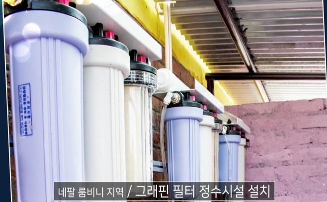 그래핀 필터는 성능뿐 아니라 가격면에서도 경쟁력이 뛰어납니다. 기존 정수 방식은 삼투합을 이용하는 방식이라 그래핀을 이용하는 방식보다 사용하는 물의 양이 세 배 정도 많습니다. 또 하나 장점은 이동 설치가 가능하다는 건데요. 이 회사에서는 엄홍길재단과 함께 네팔 오지 문비니 지역 학교에 정수 시설을 설치했습니다.