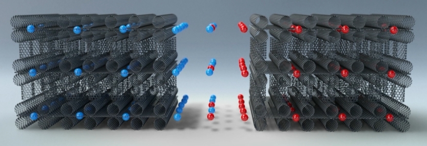 그렇다면 탄소나노튜브는 전기차 배터리의 성능을 어떤 식으로 향상시킨 걸까요? 양극과 음극을 오가는 전자의 이동에 따라 충전과 방전이 이루어지는 리튬이온 배터리.