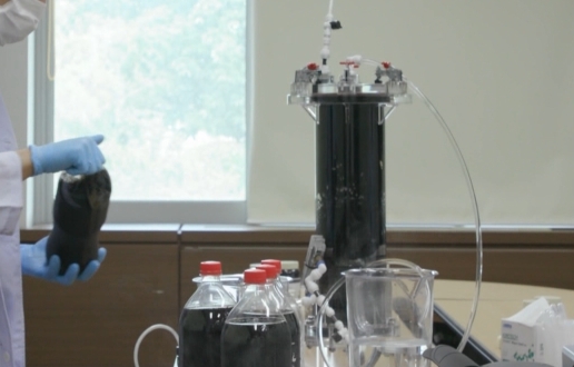 콜라는 물에 검은 색소와 탄산을 주입해 만든 음료인데요. 오염 물질도 없는 콜라에서 대체 뭘 걸러낸다는 걸까요? 그래핀 정수 필터를 이용해 콜라를 걸러내면 어떤 일이 벌어질까요. 콜라는 그래핀이 층층이 쌓인 이 원통을 통과해 다른 쪽 호수로 나오게 되는데 놀랍게도 색소라고는 전혀 없는 맑은 물입니다.