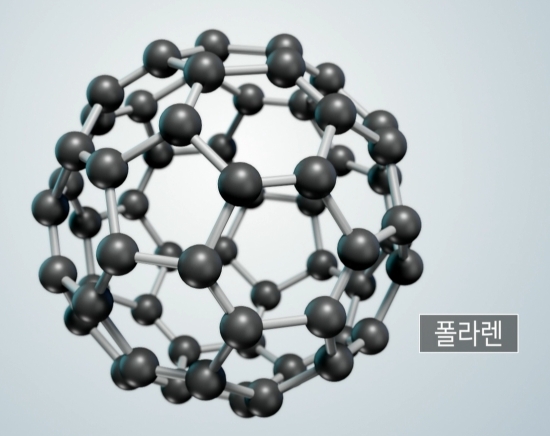 탄소나노튜브는 역시 같은 탄소 원자로 이루어진 흑연에서 발견됐습니다. 원소 기호 C. 결합에 따라 다른 물질을 만들어내는 탄소. 때문에 탄소 기반 신소재들 역시 서로 닮은 듯 다릅니다. 1985년 발견된 축구공 모양의 폴라렌. 정전기 제거와 잡음 필터로 사용됩니다.