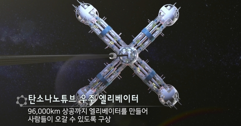 그래서 탄소나노튜브가 처음 발견됐을 당시 과학자들은 흥분했습니다. 이런 성질의 신소재라면 우주를 가로질러가는 우주 엘리베이터 역시 가능하지 않을까.