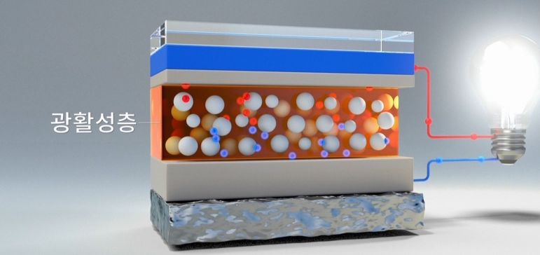 빛 에너지를 전기 에너지로 바꾸는 곳이 광활성층. 신소재도 여기 광활성층에 적용됩니다.