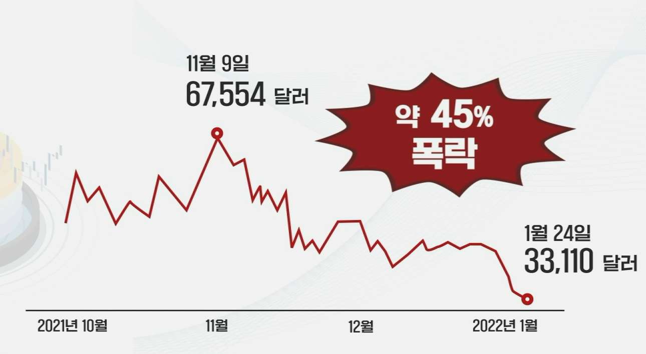 지난해 11월, 최고가를 기록한 비트코인은 하락세를 보이면 두 달 새 45% 폭락했습니다.