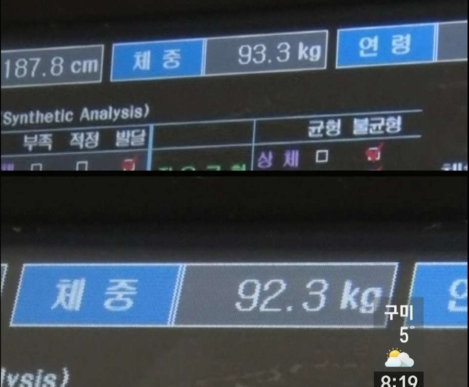 그렇다면 땀복을 입었을 때는 어땠을까요. 입지 않았을 때 보다 0.8kg이 더 줄었습니다. 이 정도면 효과가 있다고 말할 수 있을까요?