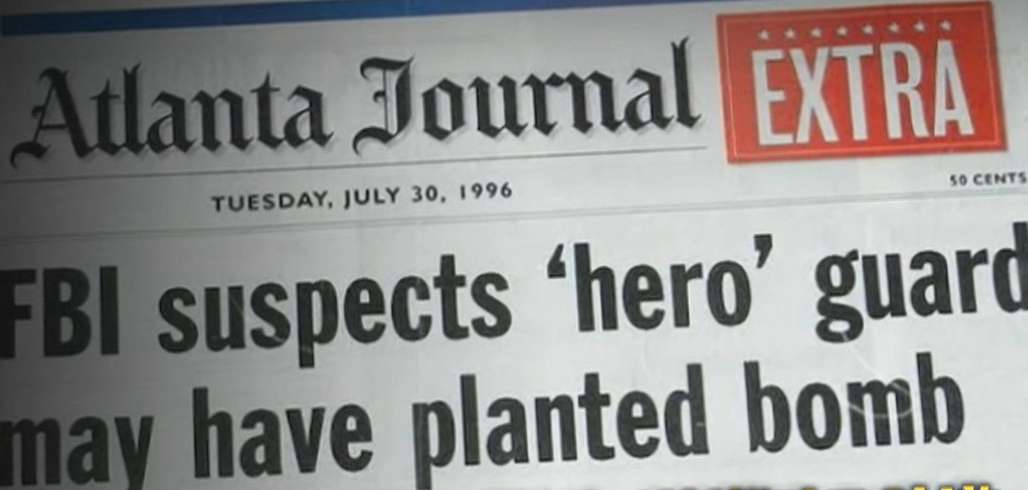 하지만 애틀랜타 저널의 기자 캐시 스크럭스가 FBI에서 리처드를 조사 중이라는 이야기를 듣고 그가 진범인 듯 기사화했고 다른 언론들 역시 연이어 추측성 기사를 써대며 리처드를 범인으로 몰고 갔던 것이었다.