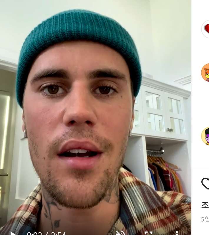 저스틴 비버 안면마비 동영상