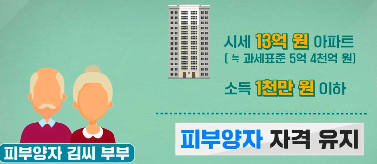 이로써 피부양자 탈락자는 약 27만 명으로 예상된다고요. 고가의 아파트 등을 가진 피부양자 2만 3천여 명은 앞으로도 피부양자 자격을 유지하게 돼 논란이 예상되는데요. 직장인 자녀의 피부양자로 등록된 김 씨 부부는 시세 13억 원인 아파트를 1채 갖고 있습니다. 하지만 소득은 1년에 1천만 원을 넘지 않아 오는 9월 2단계 개편이 시행되더라도 피부양자 자격을 유지하게 됩니다.