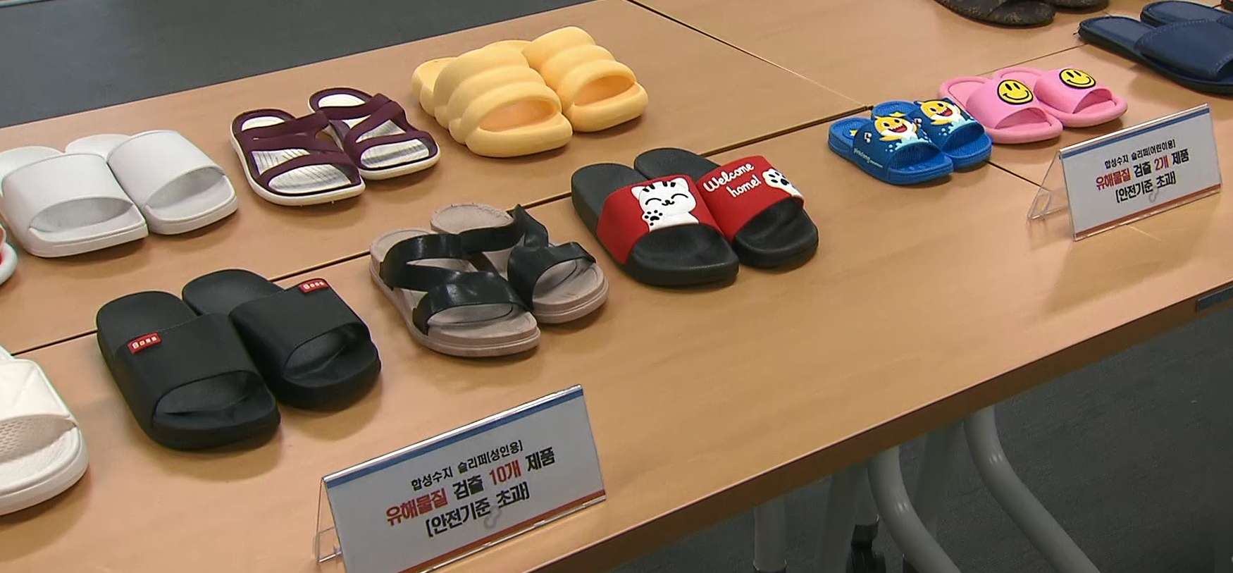 올해 한국소비자원은 슬리퍼에서 유해물질이 검출됐다고 발표했습니다. 합성 가죽 슬리퍼 10개 중에 8개 제품에서 프탈레이트계 가소제, 납, 그리고 카드뮴이 허용 기준 이상으로 검출이 됐다고 발표한 것인데요.