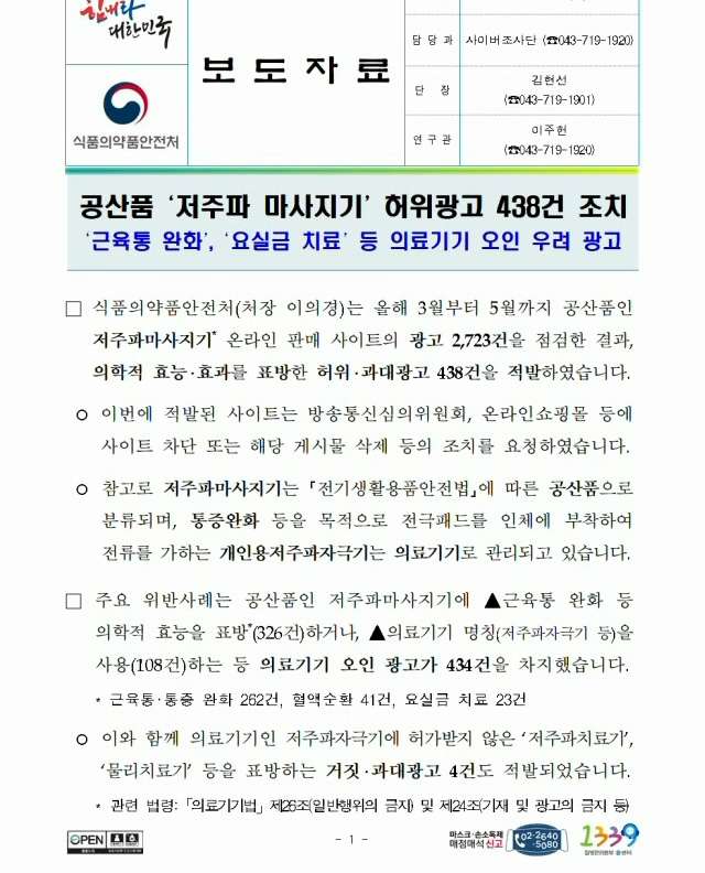 [이재경 변호사 : 공산품으로 분류되는 저주파 마사지기 같은 경우에는 전기생활용품안전법에 따라서 공산품으로 분류가 되기 때문에 의료법상의 직접적인 관리나 감독을 받지는 않습니다. 따라서 광고를 할 때 의료적인 효능을 강조하거나 암시하게 되면 그럴 경우에는 제재의 대상이 되는 것이죠.]