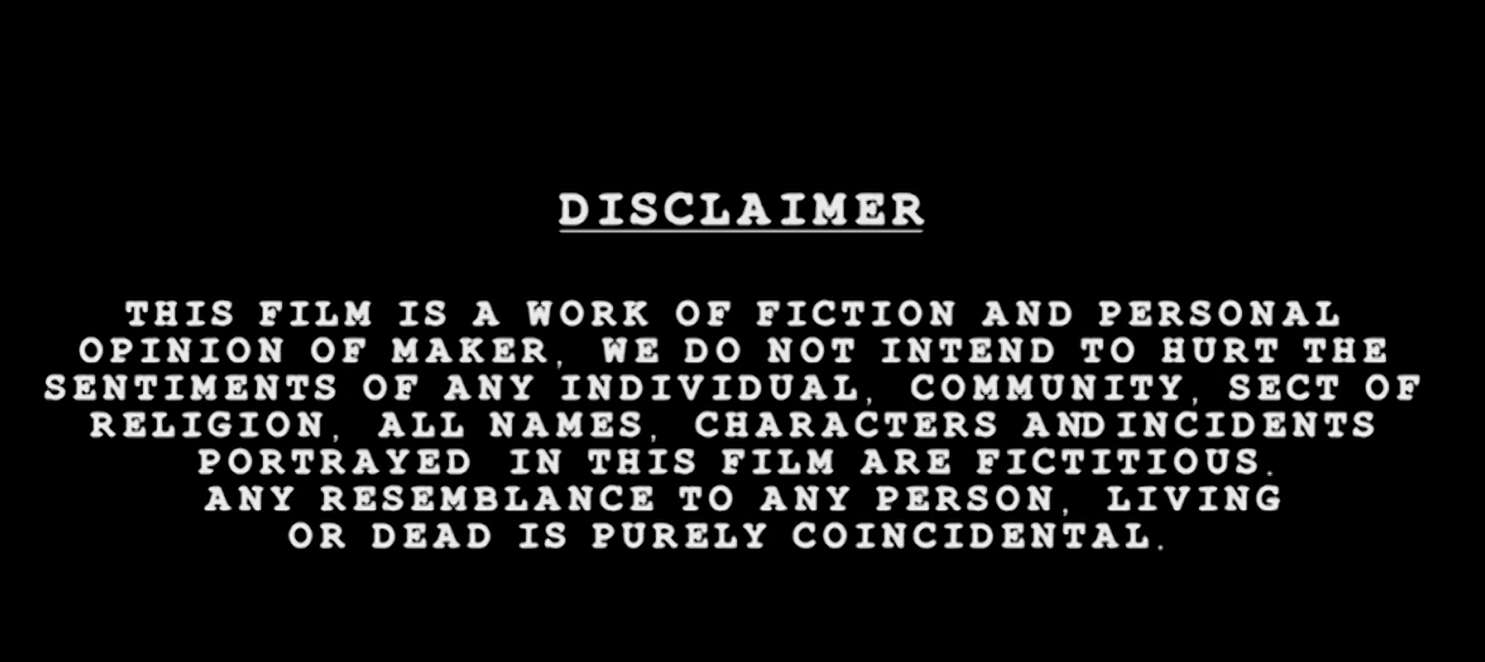 영화나 드라마에서 엔딩 크레딧에 등장하는 이 문구. 실존 인물을 기반으로 할 경우 명예훼손 소송을 피하기 위한 면칙 조항으로, 꾸며낸 이야기가 포함됐다는 문구를 필수로 넣게 된 것이다.
