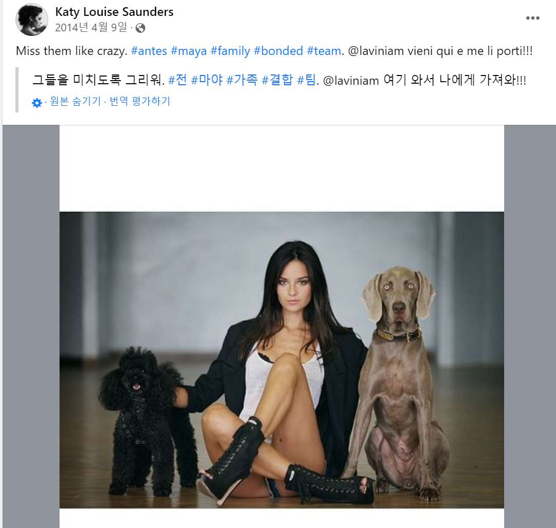 그리고 실제로 케이티 루이스 사운더스가 운영하는 것으로 보이는 공식 오피셜 페이스북에서 반려견들과 함께 찍은 사진을 볼 수 있는데, 안테스 antes, 마야 maya라고 표기해둔 것을 아래와 같이 확인할 수 있습니다.