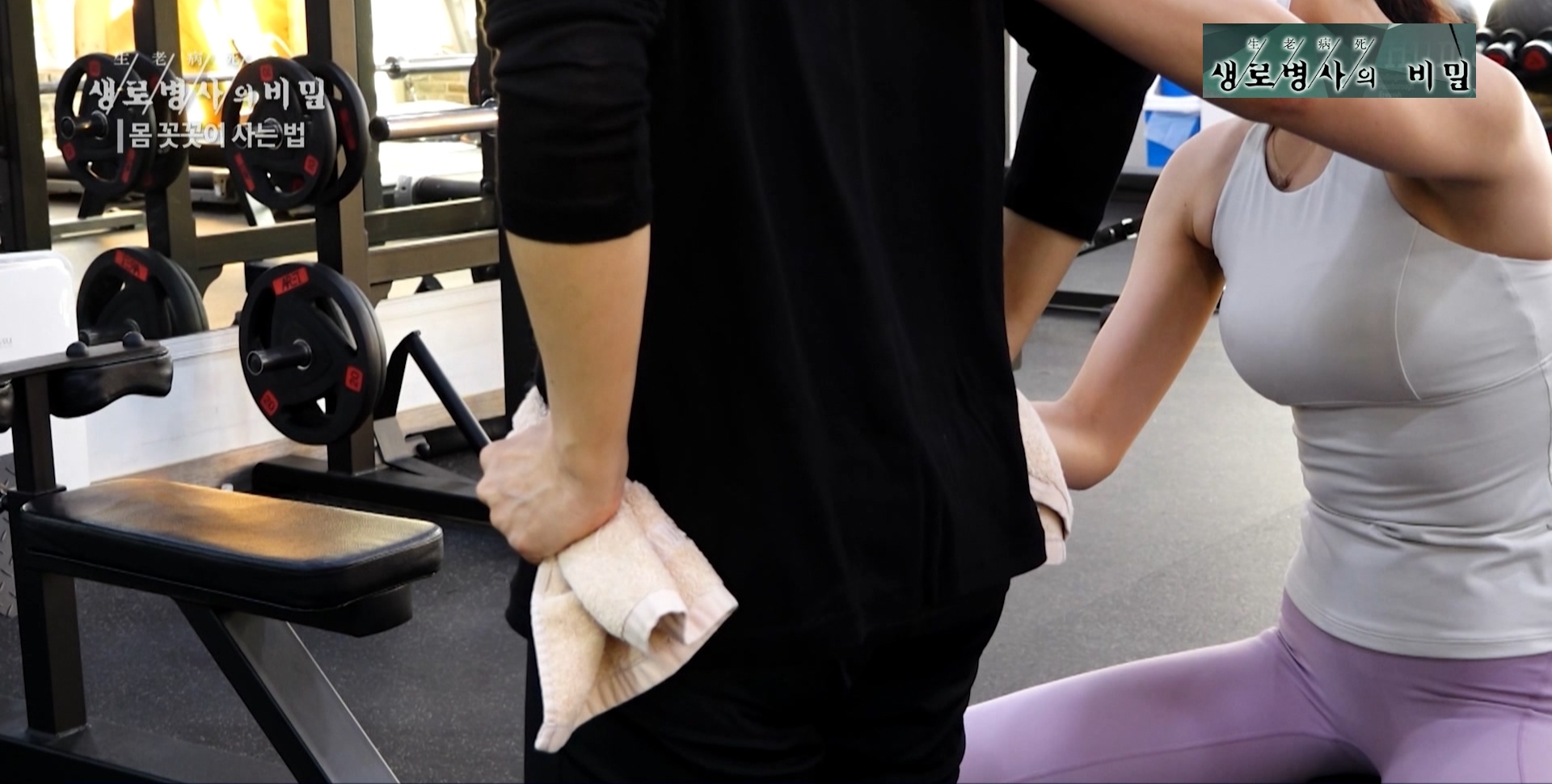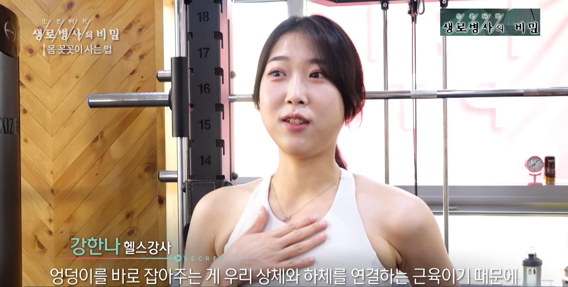 강한나 헬스강사 멘트: 엉덩이를 바로 잡아주는 게 우리 상체와 하체를 연결하는 근육이기 때문에 엉덩이가 건강할수록 허리에 자극, 부담이 훨씬 덜 갈 거예요.