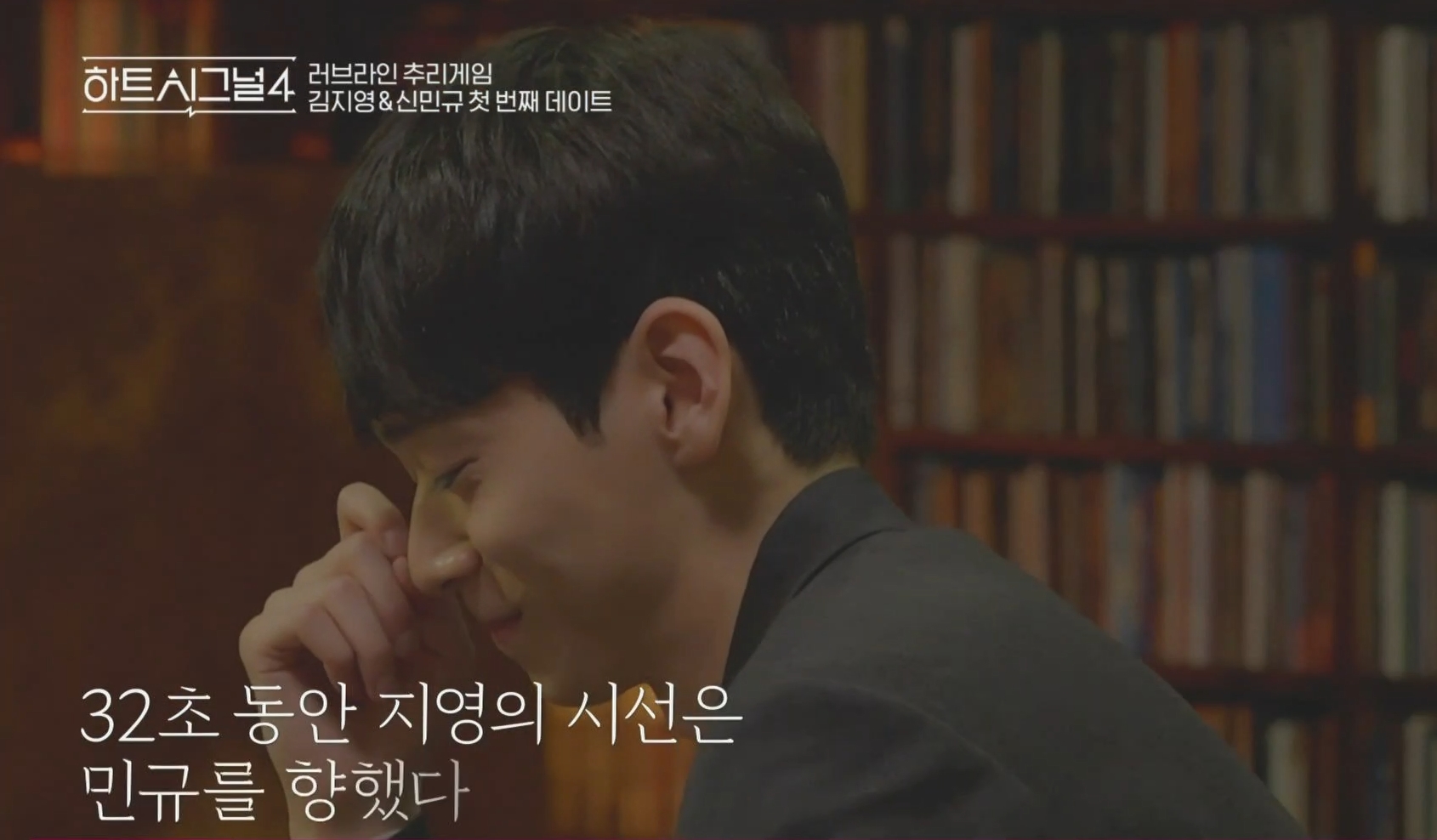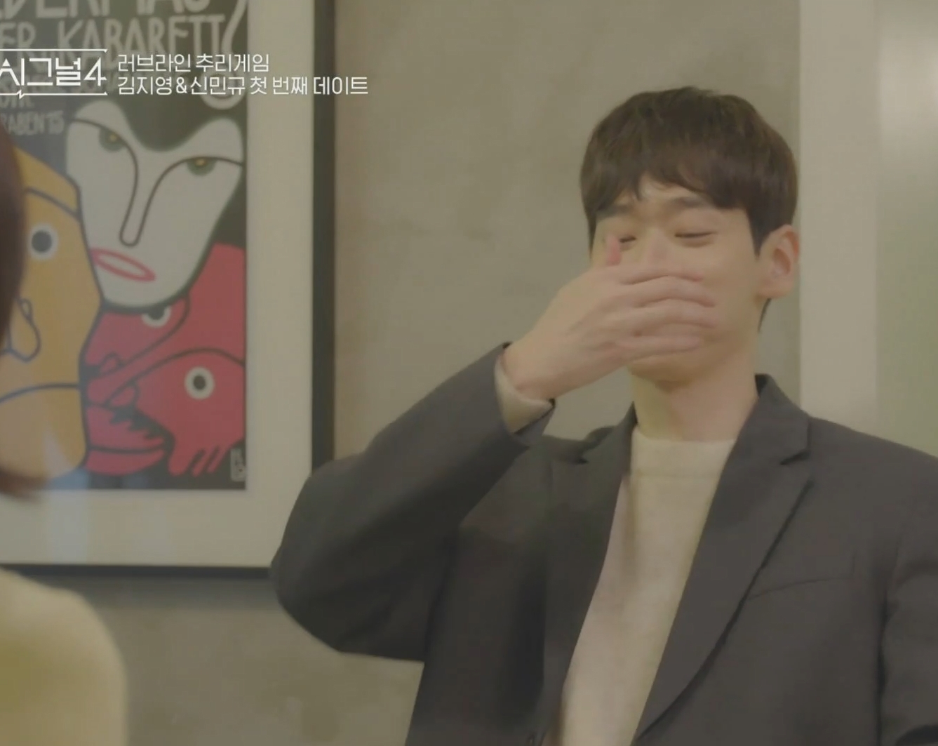 지영은 민규를 자연스럽게 똑바로 바라보는데, 신민규는 쑥스러워하며 제대로 눈을 마주치지 못하는 장면이 있었다. 아래 장면.
