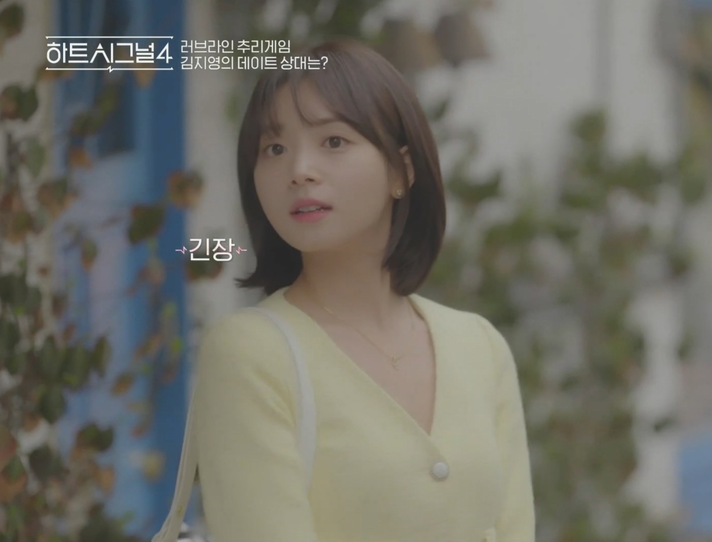 아래는 지영민규의 데이트의 첫장면으로, 김지영이 예쁜 노란색상의 옷을 입고 흰색 스타킹에 흰색 하이힐을 신고 등장한 장면이다. 배경음악으로 처음 들어보는, 너무 좋은 노래가 나왔다.
