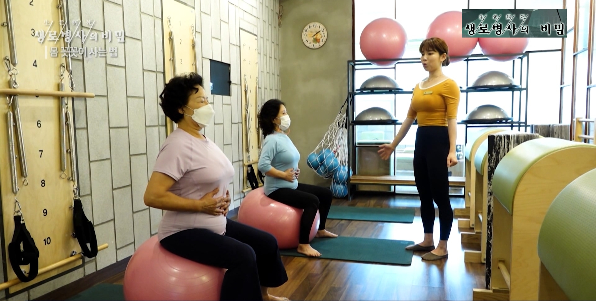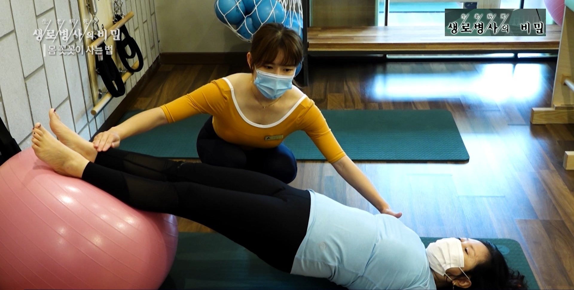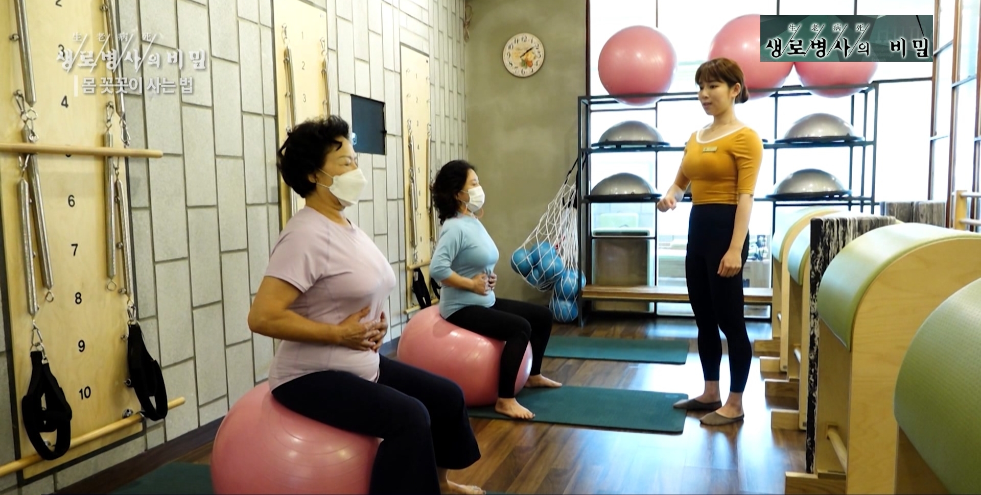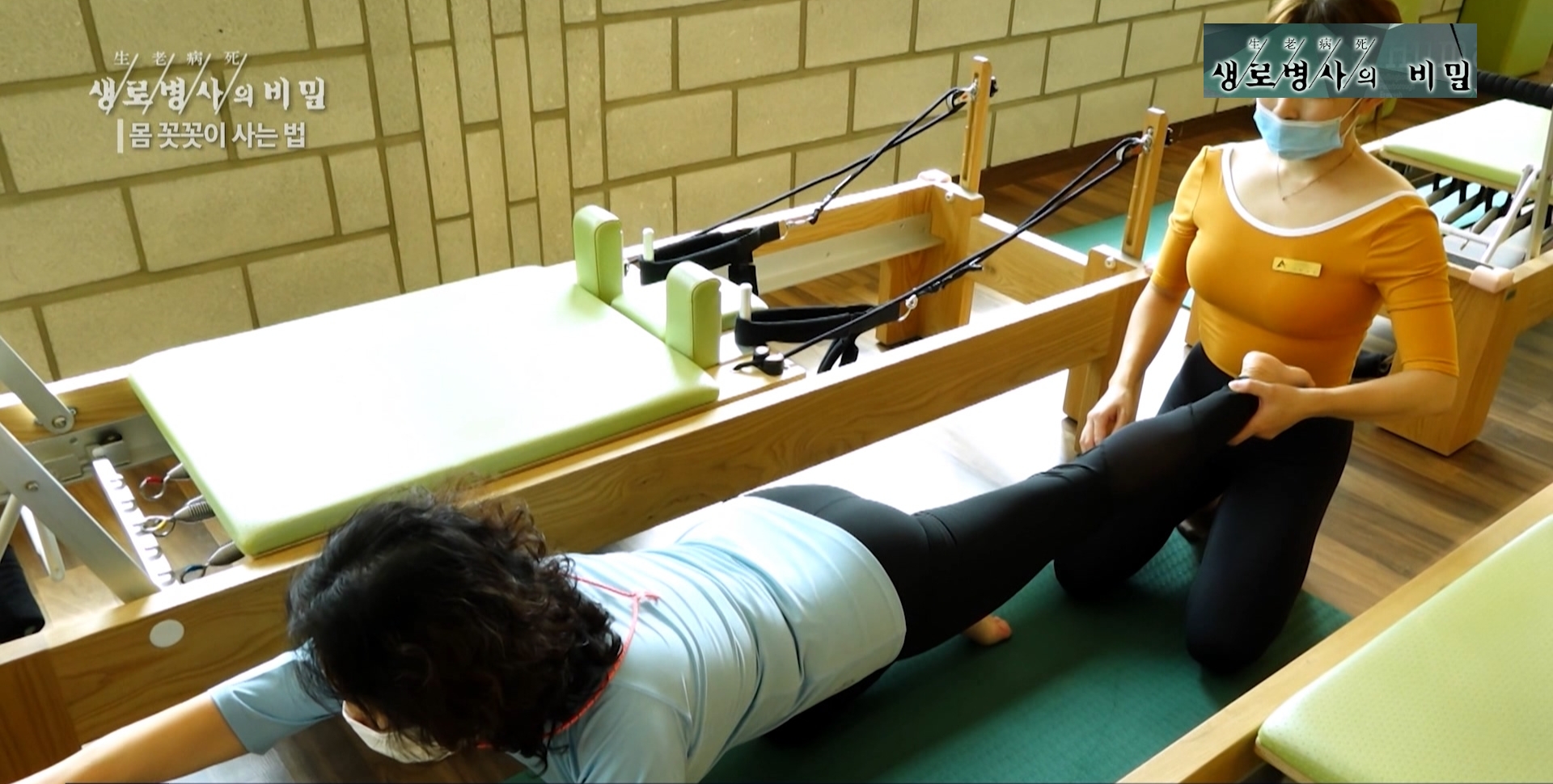 60대 이상으로 이루어진 실버 필라테스 교실이다. 평상시 필요한 움직임을 유연하게 하는 동작들로 구성돼 있다. 척추 전방전위증 진단을 받고 얼마 전 수술을 했다는 오옥경 씨. 재활치료를 위해 필라테스를 시작했다.
