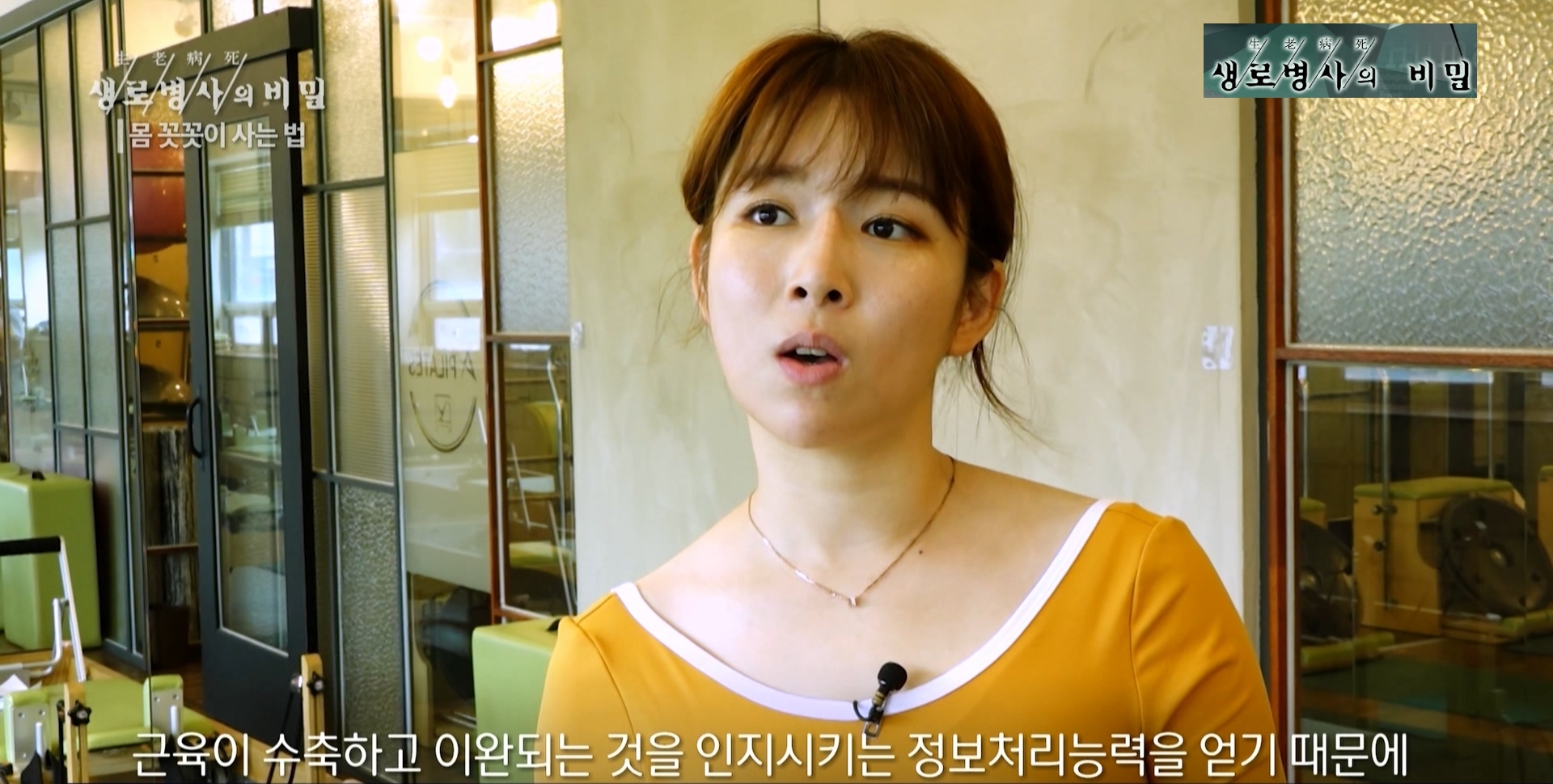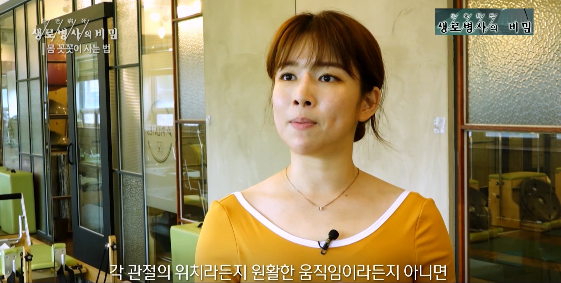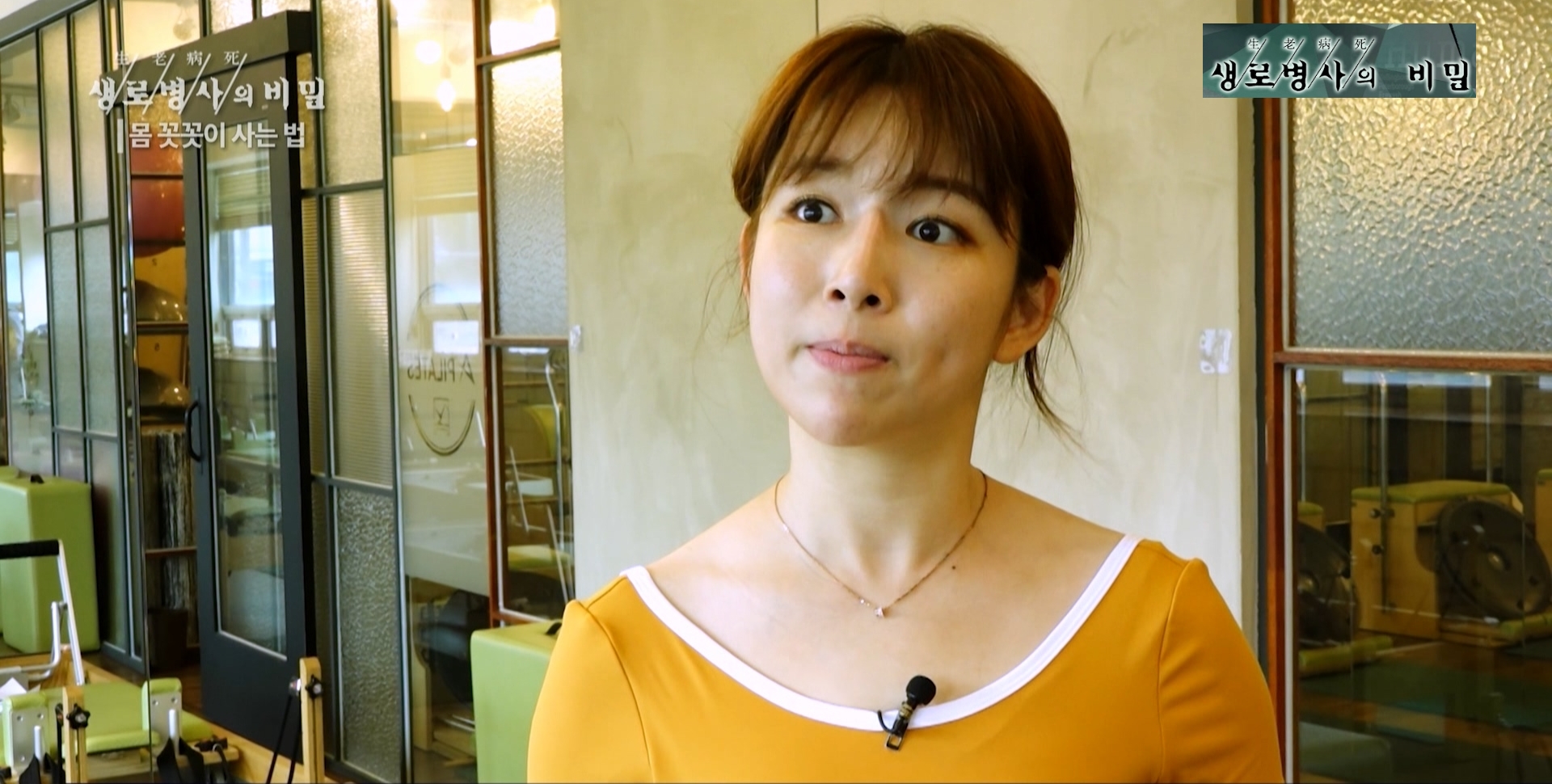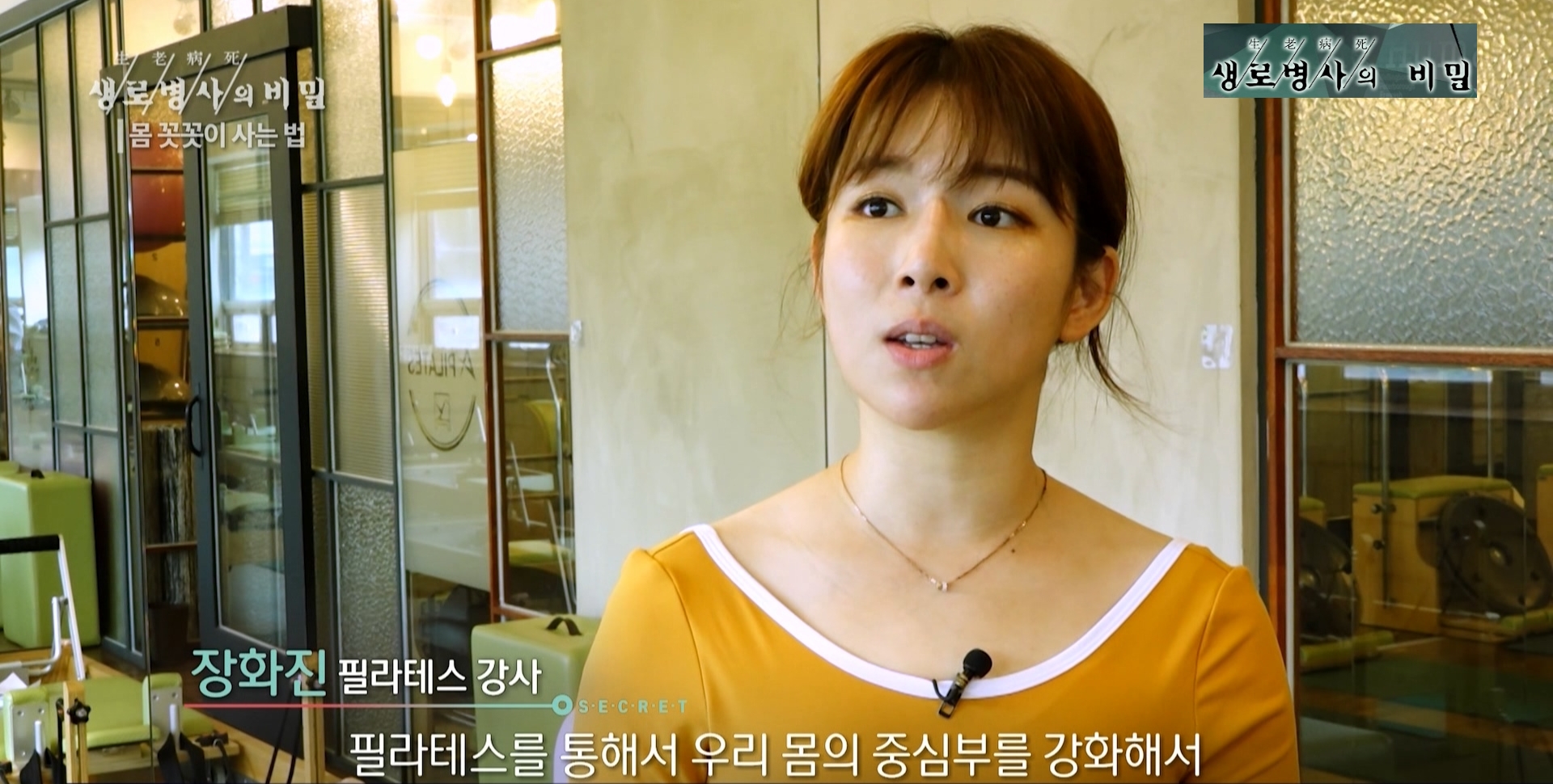 장화진 필라테스 강사 멘트: 필라테스를 통해서 우리 몸의 중심부를 강화해서 각 관절의 위치라든지 원활한 움직임이라든지 아니면 근육이 수축되고 이완되는 것을 인지시키는 정보처리능력을 얻기 때문에 자세교정 뿐만 아니라 척추 건강에도 많은 도움이 돼요.
